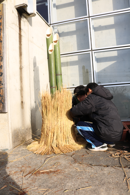 12月13日(土)にPTA門松の会が行われました。本年度も伊藤様に講師を務めていただき、中学校の玄関前の門松づくりと、参加された方々が各ご家庭に持ち帰っていただくミニ門松づくりをご指導いただきました。青空の広がる気持ちよい天候の下、参加者全員で協力して玄関の門松を完成させたり、互いに教え合いながらミニ門松づくりに取り組んだりと、参加された方々の親睦も深まる素敵な時間になりました。ご指導いただいた伊藤様、またご参加いただいた保護者の皆様、生徒のみなさんありがとうございました。