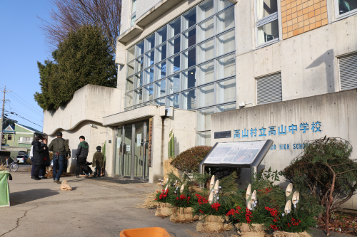 3月19日に第67回卒業証書授与式を行いました。56名の3年生が9か年の義務教育を終え、高山中学校を巣立っていきました。前日の夜から雪が降り続き、一面が雪に覆われた雪景色の中での卒業式となりましたが、多くのご来賓の皆様にもご臨席を賜り、厳粛さの中にもあたたかさのある卒業式にすることができました。式の終わりには、全校で「さくら」の合唱を行い、さらに卒業生の「旅立ちの日に」の歌声が体育館中に響き渡り、感動の空間の中で卒業式を終えました。共に過ごした3年生の皆さんとのお別れは寂しいですが、3年生の皆さんのこれからの活躍を期待しています。