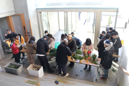 12月14日(土)にPTA門松づくりの会が行われました。昨年度までは「おやじの会」の名称で行われてきた門松づくりですが、本年度より「門松づくりの会」と名称を変更して実施しました。本年度も伊藤様に講師を務めていただき、中学校の玄関前の門松づくりと、参加された方々が各ご家庭に持ち帰っていただくミニ門松づくりをご指導いただきました。時より冷たい風が吹く寒い一日でしたが、参加者全員で協力して玄関の門松を完成させたり、互いに教え合いながらミニ門松づくりに取り組んだりと、参加された方々の親睦も深まる素敵な時間になりました。ご指導いただいた伊藤様、またご参加いただいた保護者の皆様、生徒のみなさんありがとうございました。